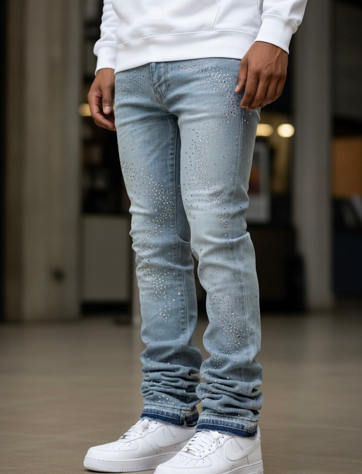 On the fence about this JC Liquid Crystal Stacked Rhinestone Jeans? Don't be. Let our satisfaction guarantee address your concerns.